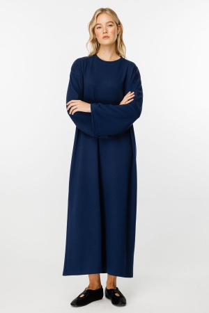 Oversıze Uzun Pamuklu Lacivert Elbise