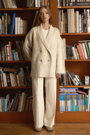 Düğme Detaylı Bej Hırka