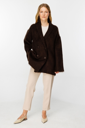 Düğme Detaylı Kahve Hırka