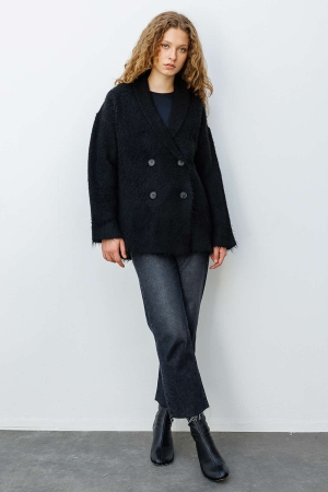 Düğme Detaylı Siyah Hırka