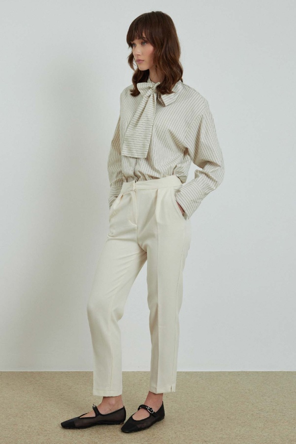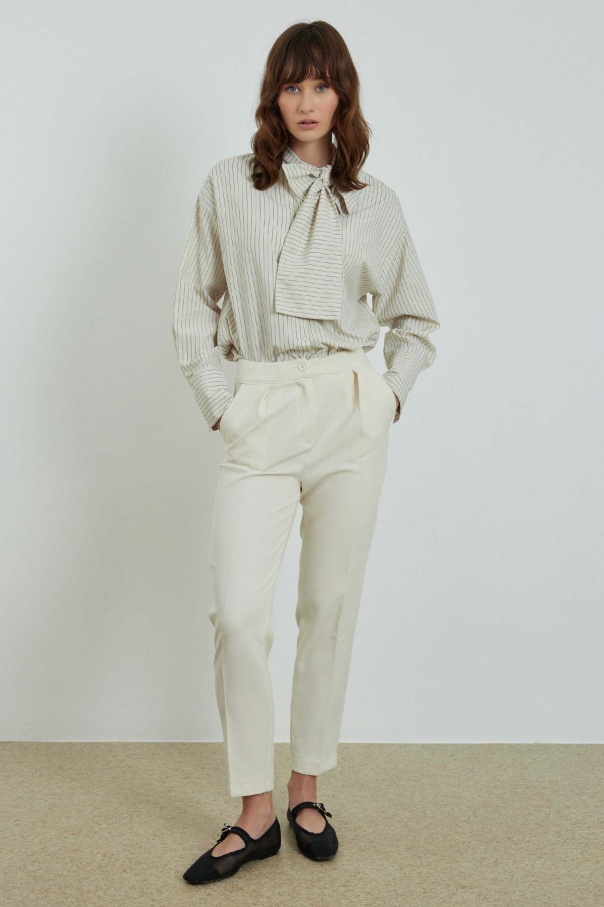Ütü İzli Havuç Kesim Krem Pantolon