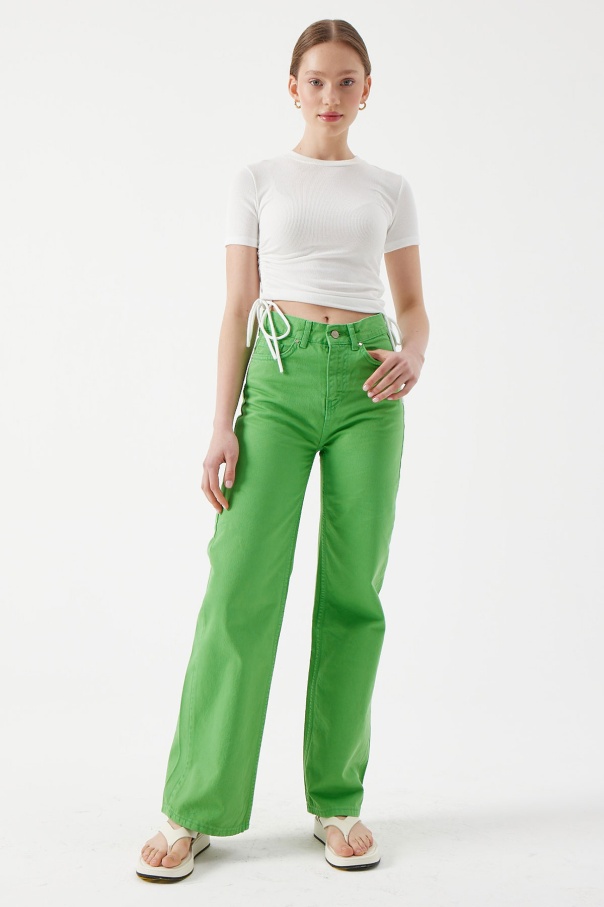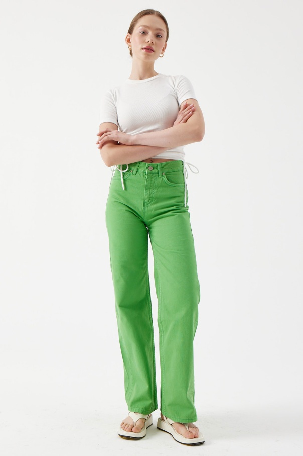 Uzun Paça Jean Pantolon - Yeşil
