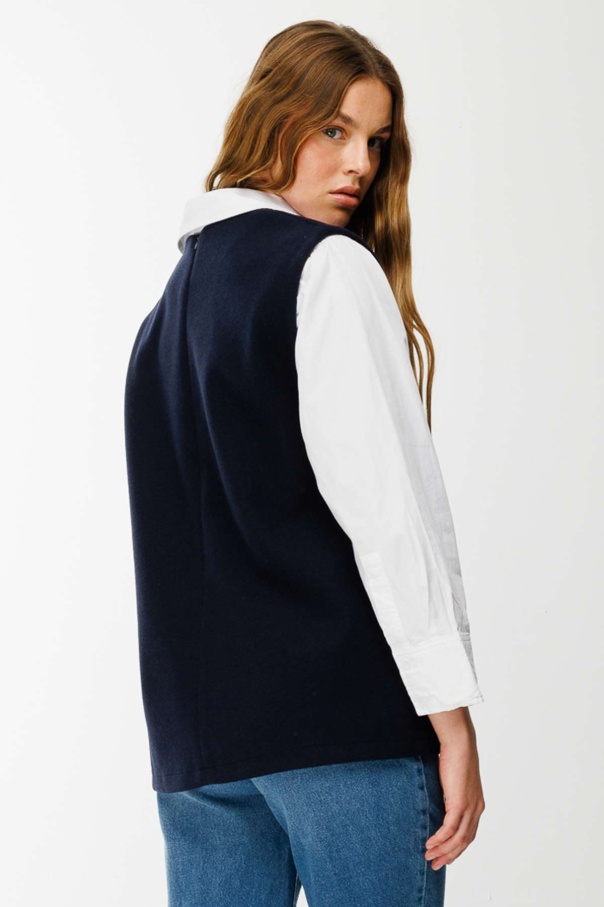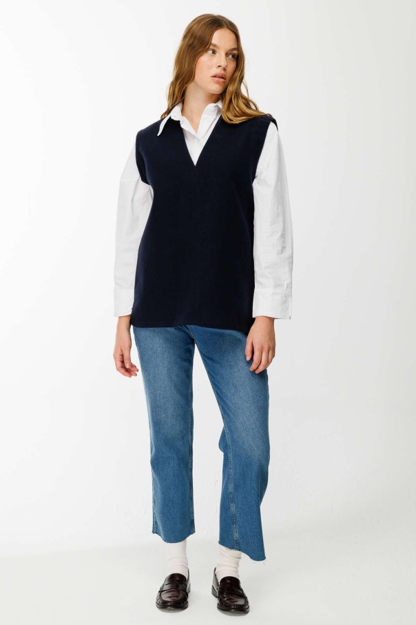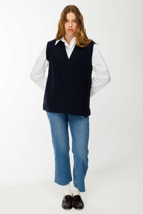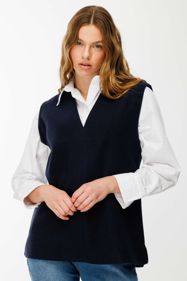 V Yaka Kaşe Lacivert Süveter