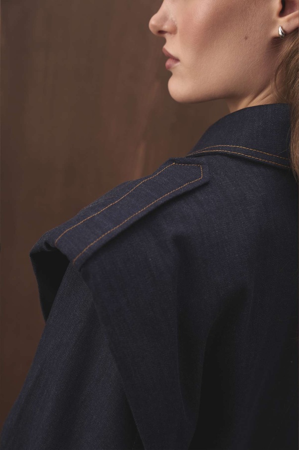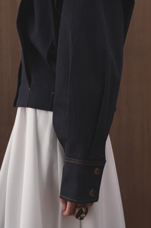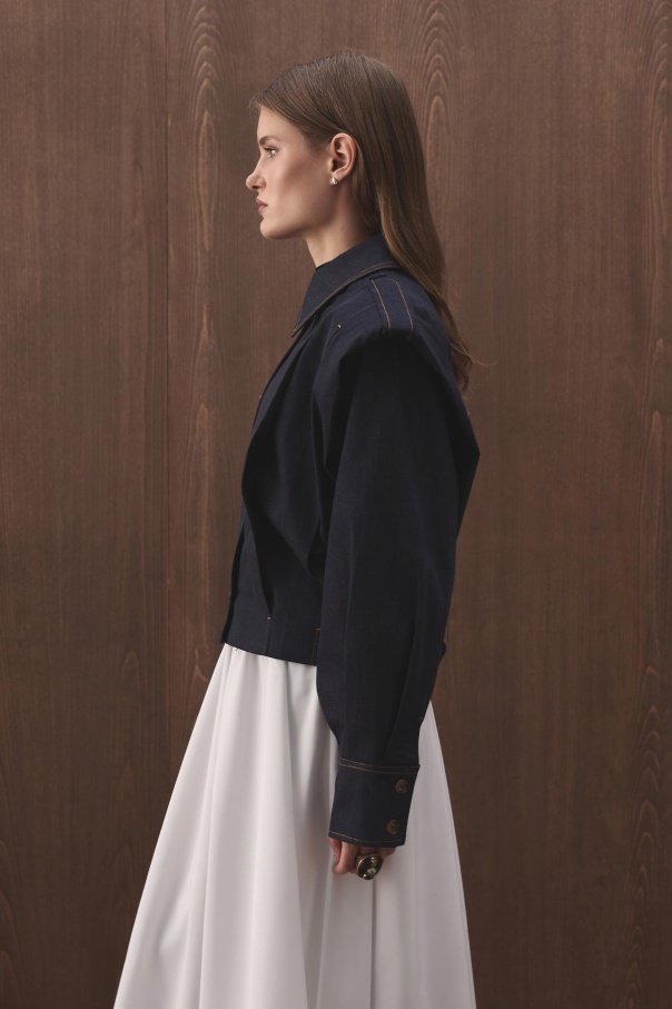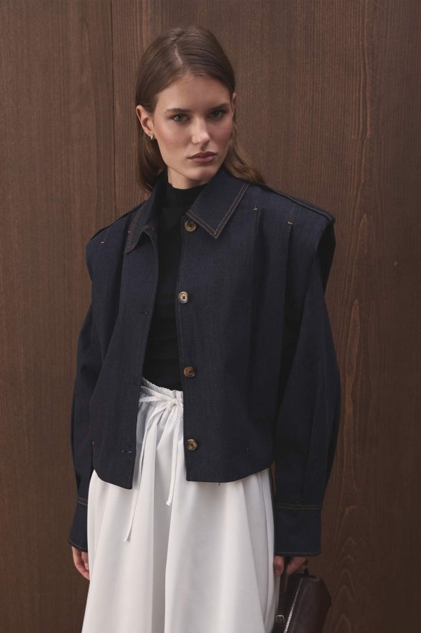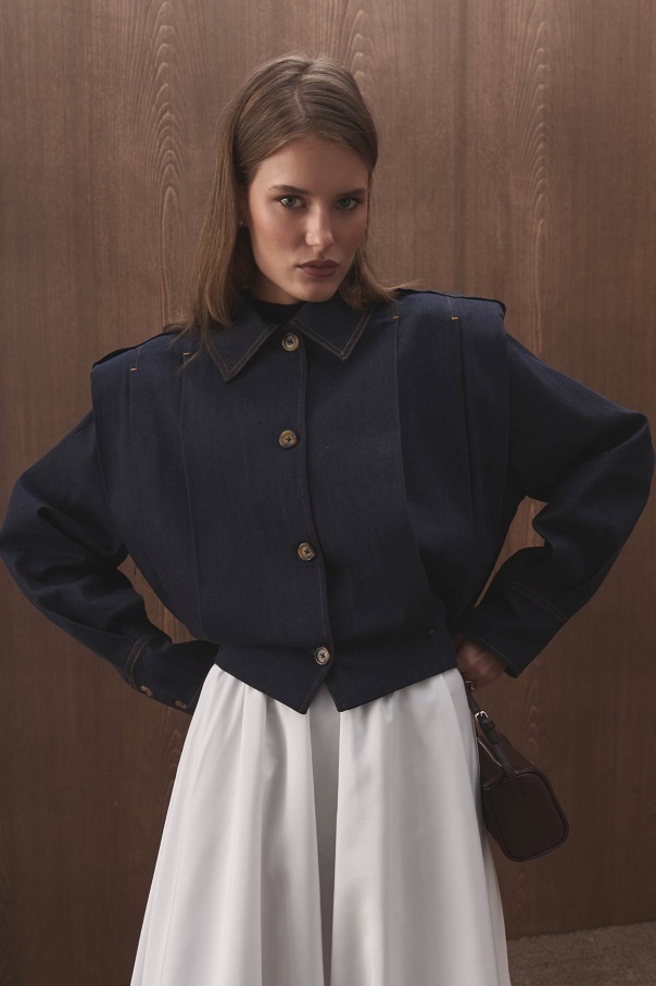 Vatkalı Denim Görünümlü Kısa Lacivert Ceket