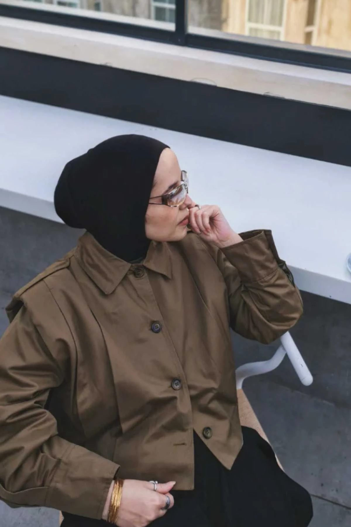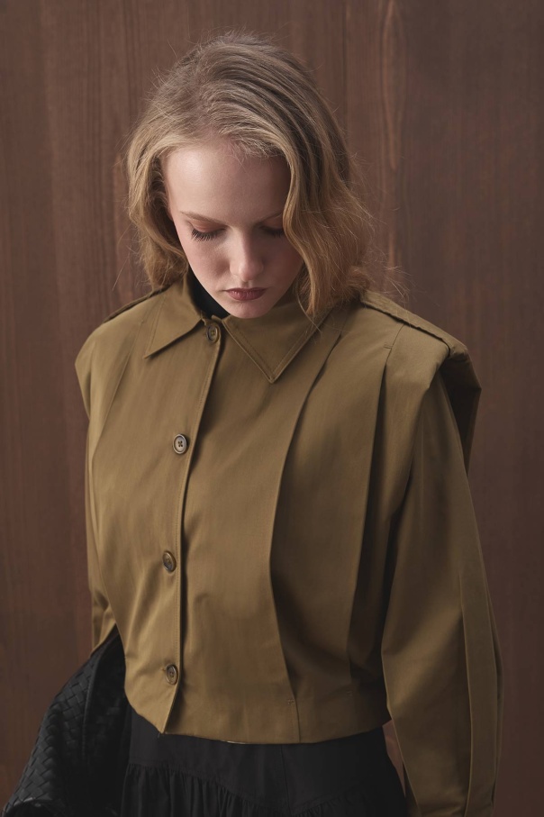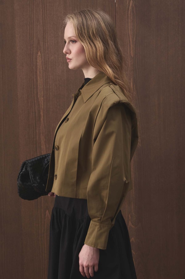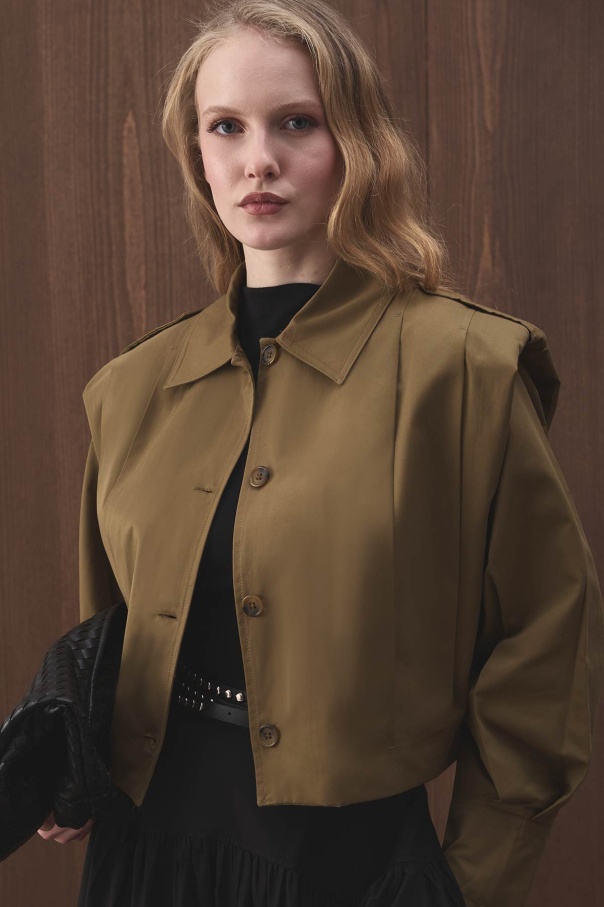 Vatkalı Gabardin Kısa Haki Ceket