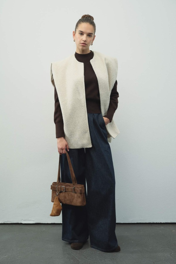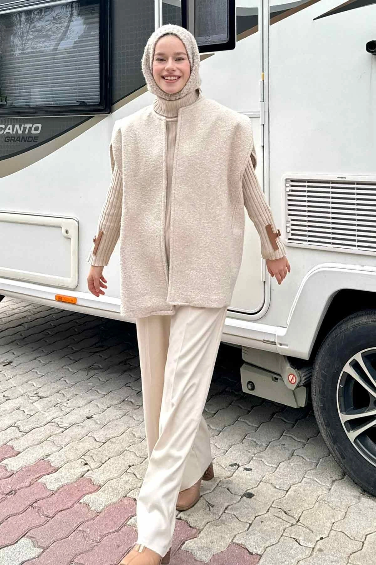Vatkalı Geniş Kesim Taş Kaşe Yelek