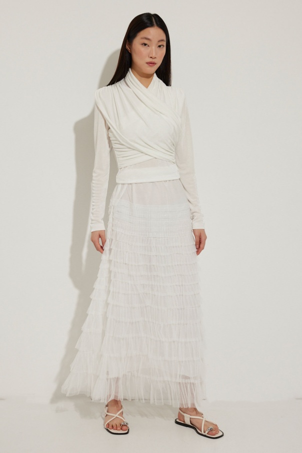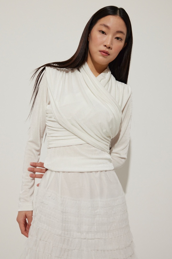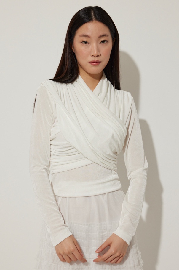 Verev Kapamalı Buzy Beyaz Bluz