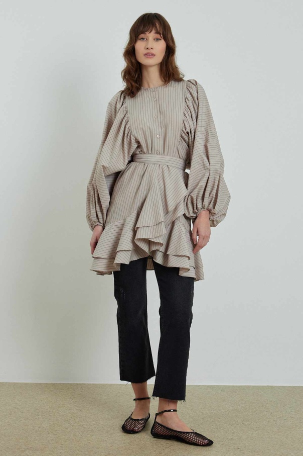 Model Ölçüleri: Boy: 1.73cm, Göğüs: 82cm, Bel: 62cm, Basen: 89cm