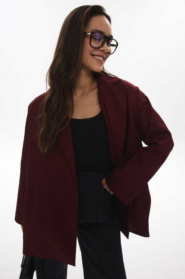 Yandan Yırtmaçlı Oversize Bordo Blazer