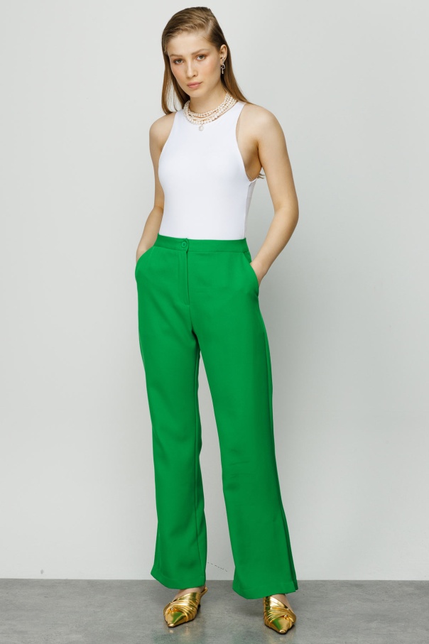 Yandan Yırtmaçlı Benetton Yeşili Pantolon
