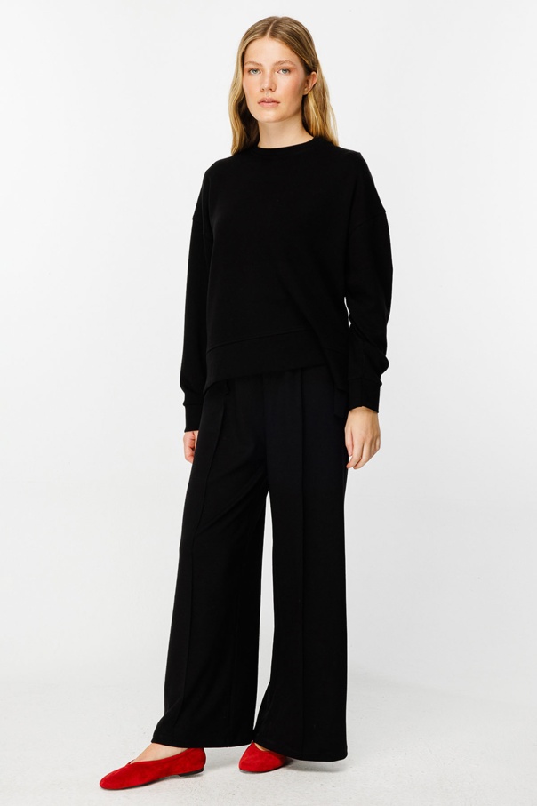 Yanları Yırtmaçlı Compact Siyah Sweatshirt