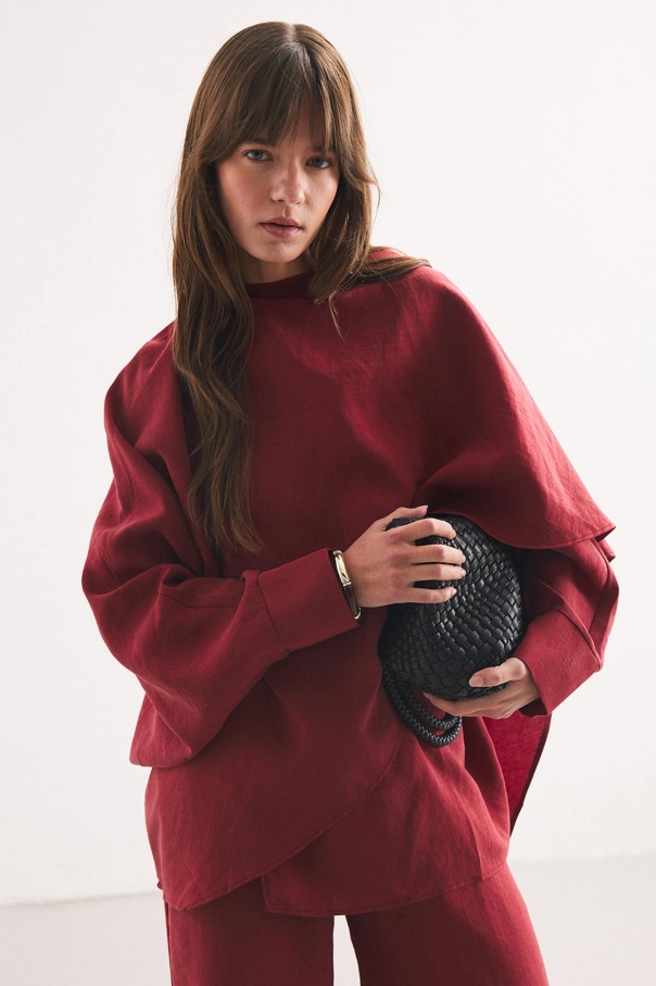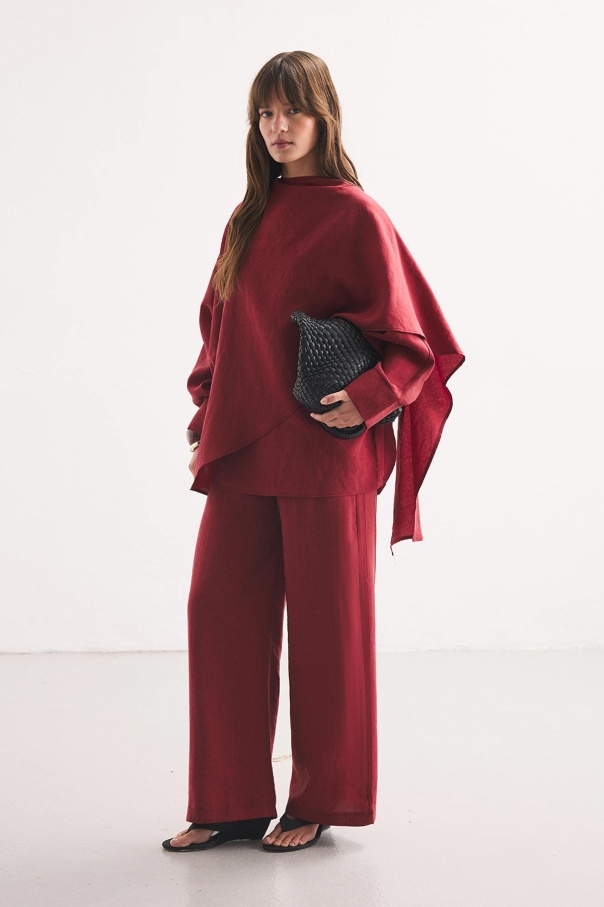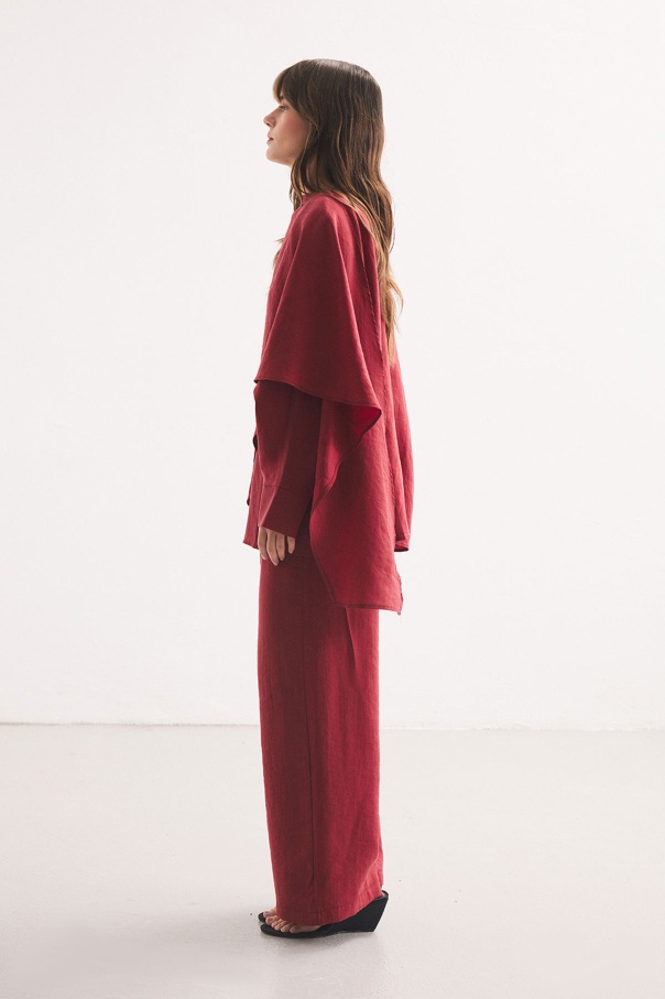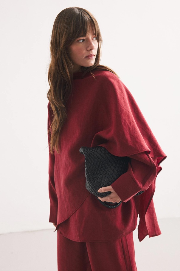 Yarasa Kol Pelerin Detaylı Bordo Pantolon Takım