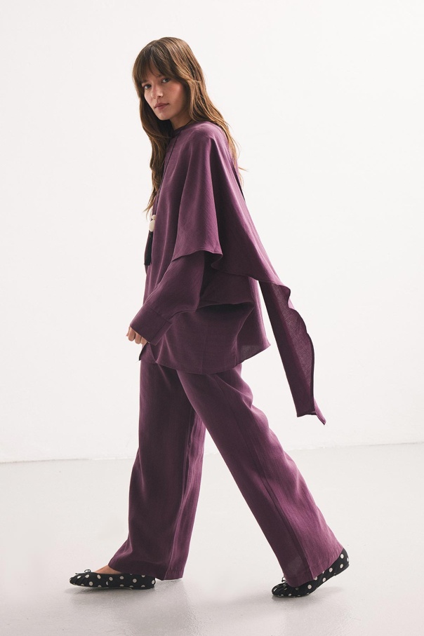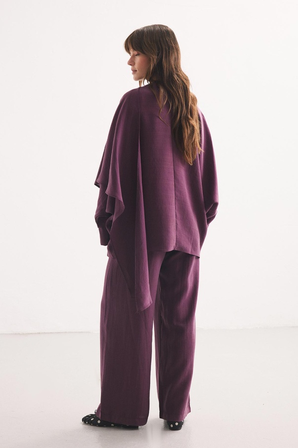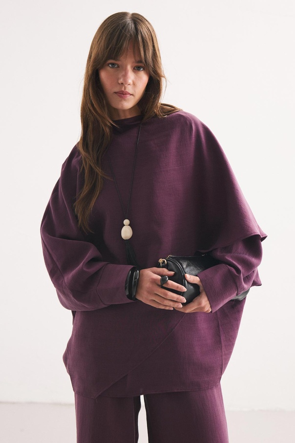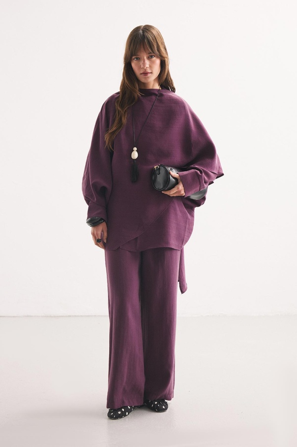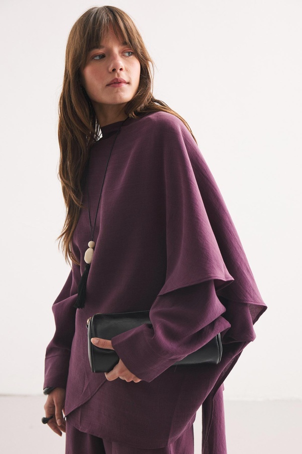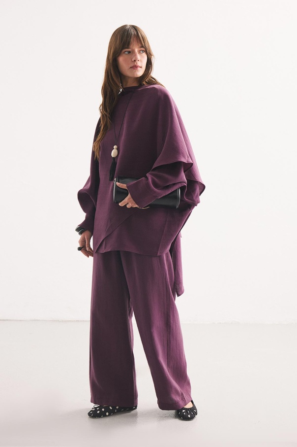 Yarasa Kol Pelerin Detaylı Mürdüm Pantolon Takım