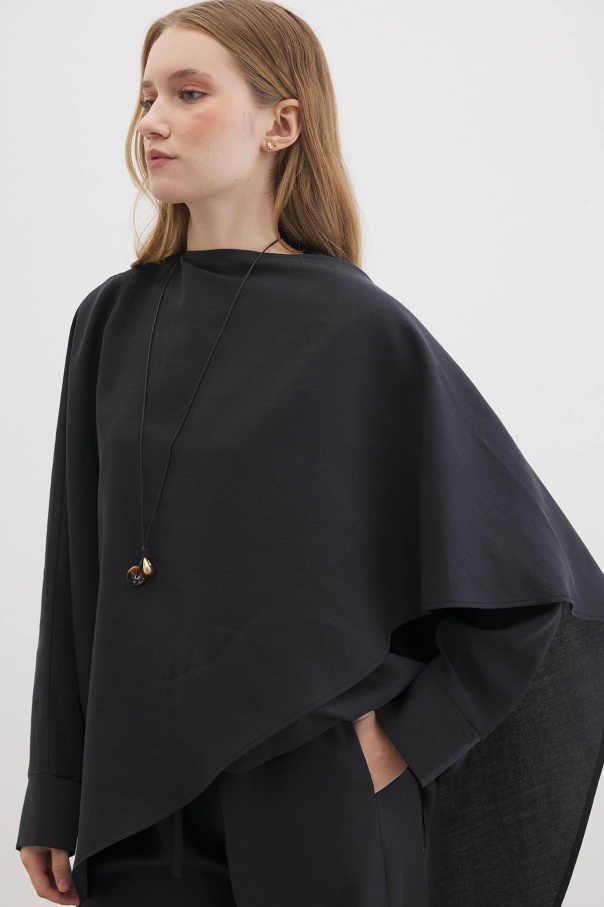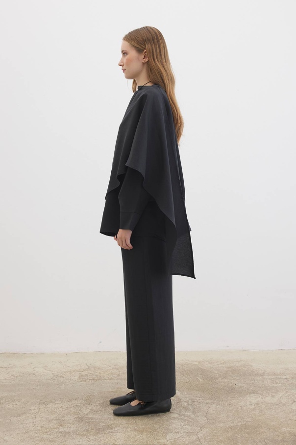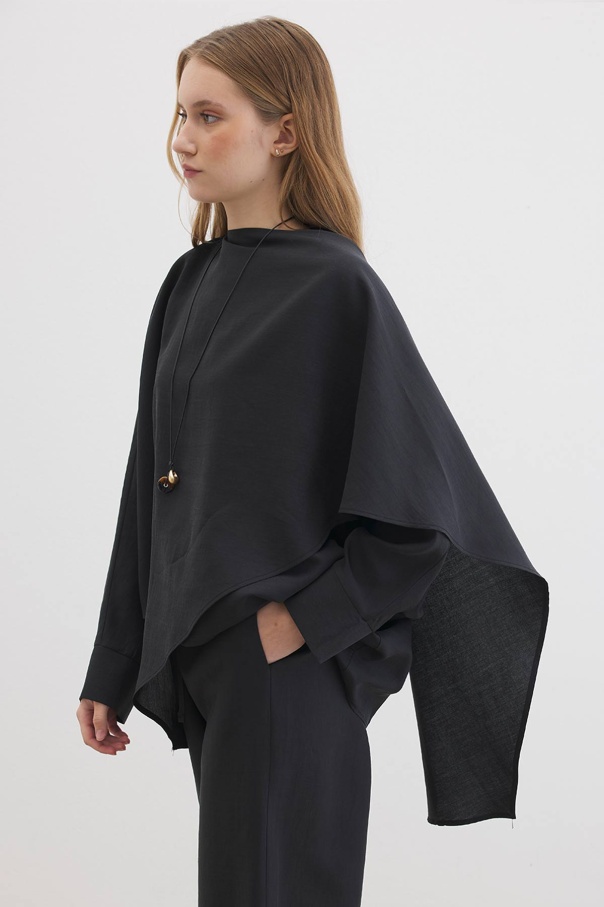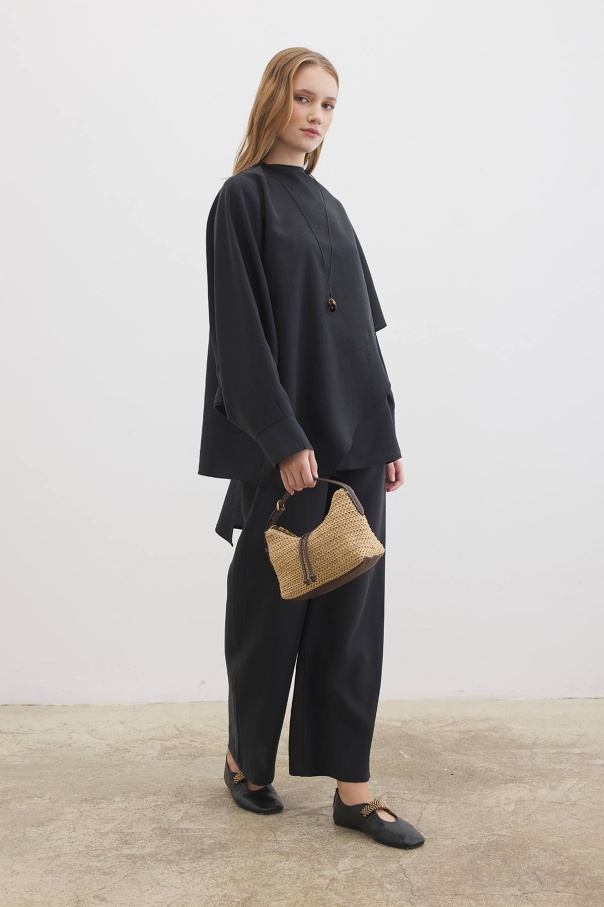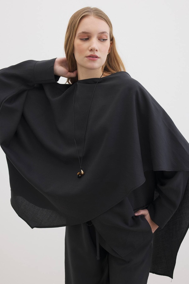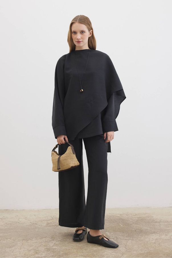 Yarasa Kol Pelerin Detaylı Siyah Pantolon Takım