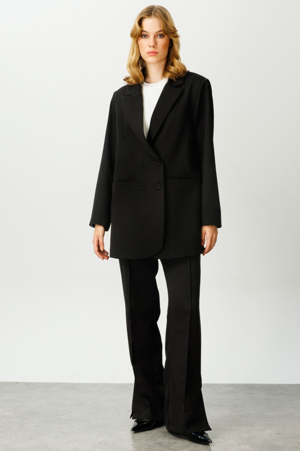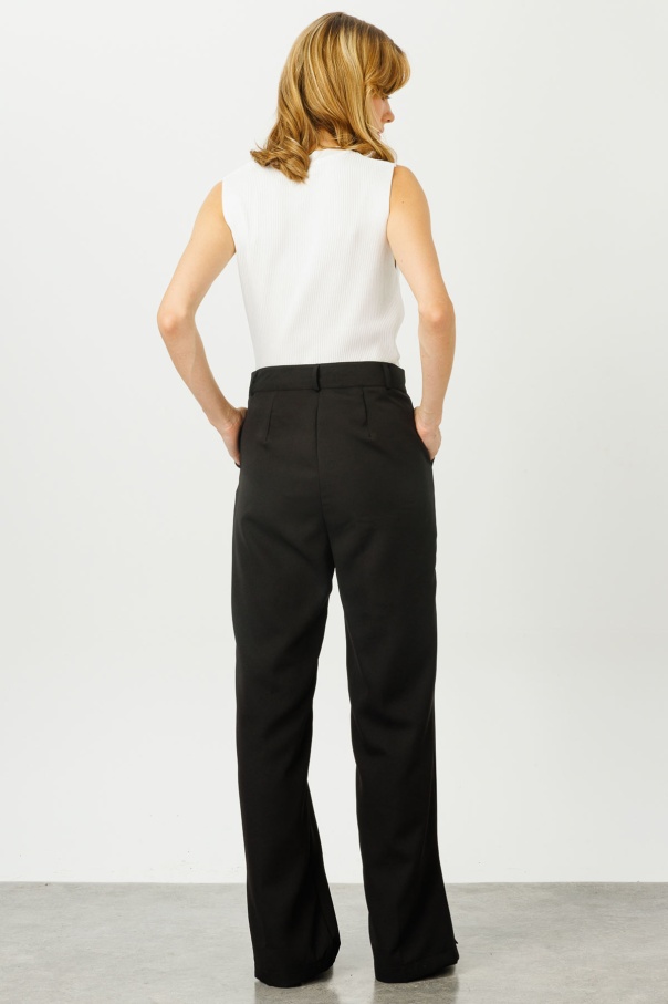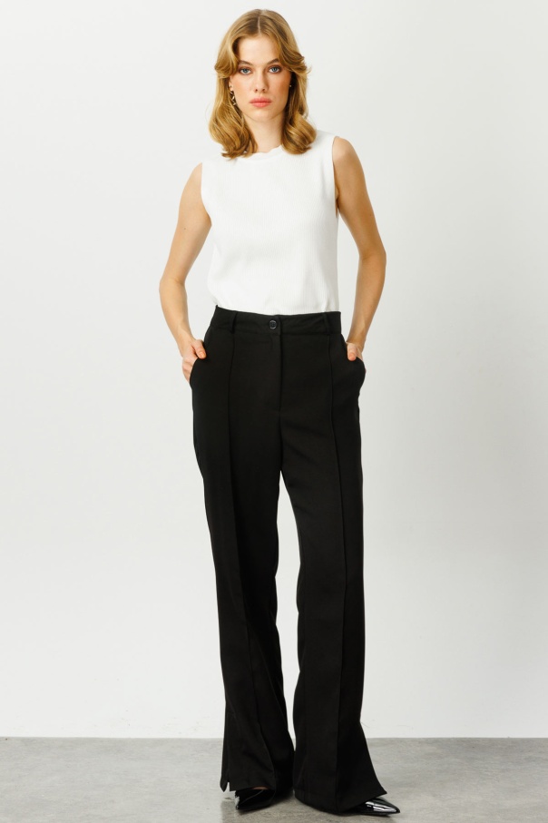 Yırtmaç Detaylı Kumaş Siyah Pantolon