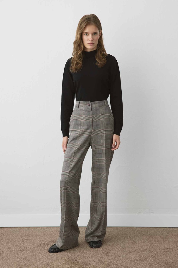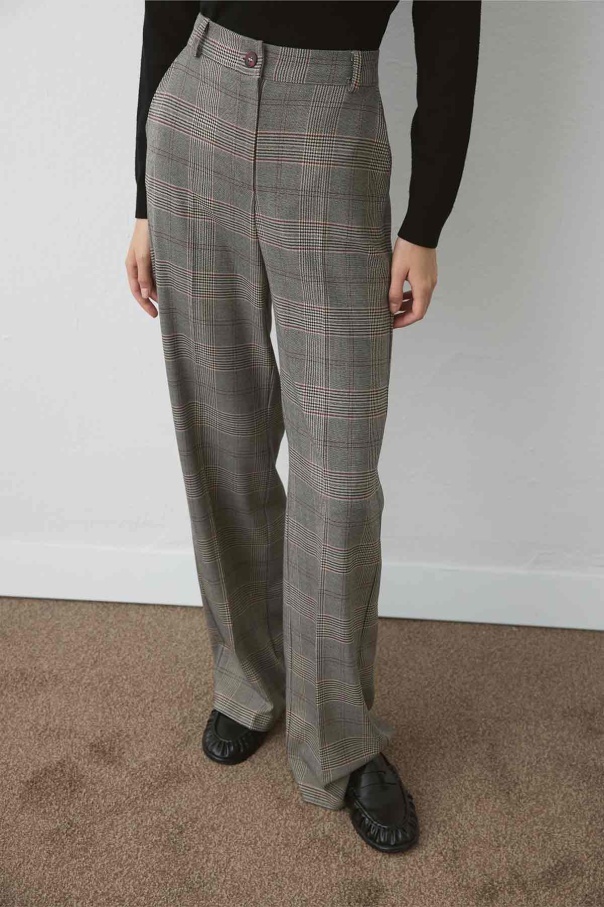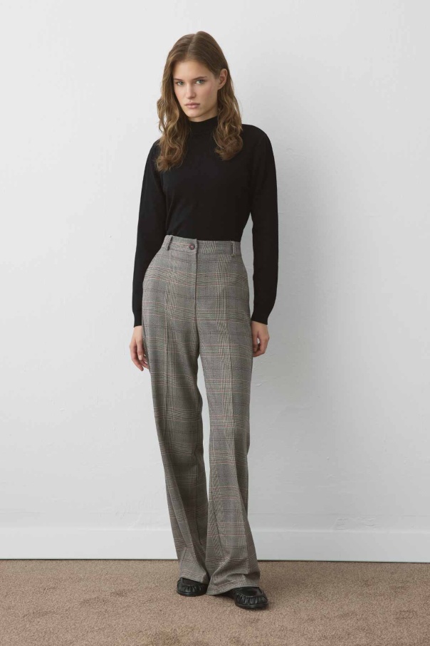 Yüksek Bel Ekose Poliviscon Bordo Pantolon