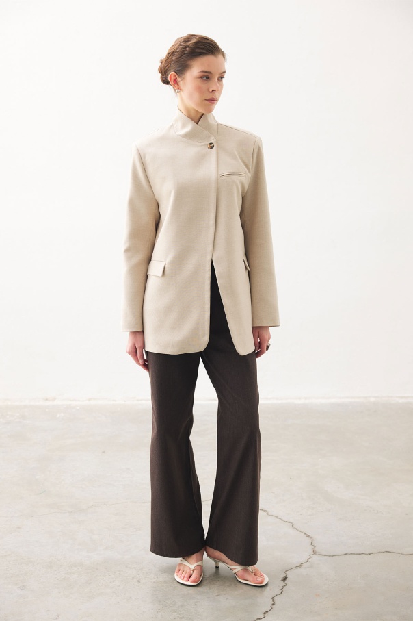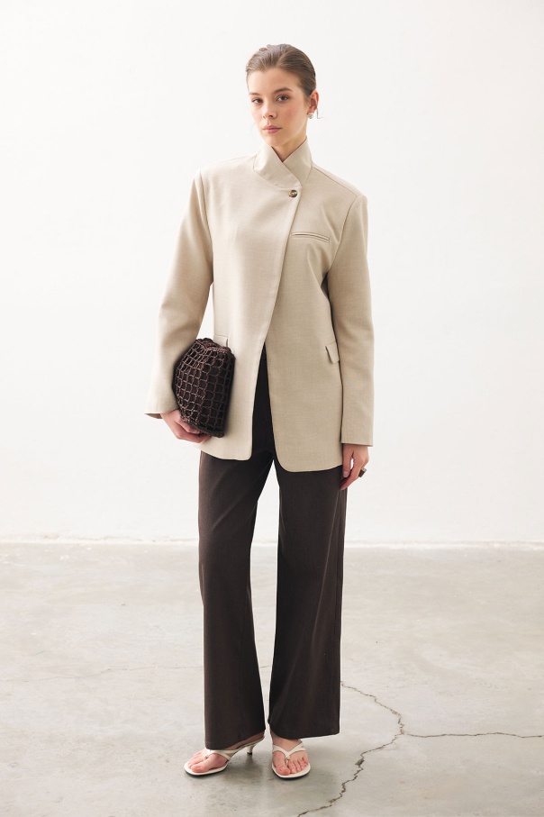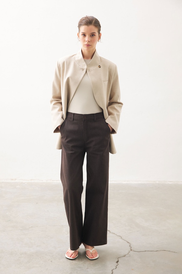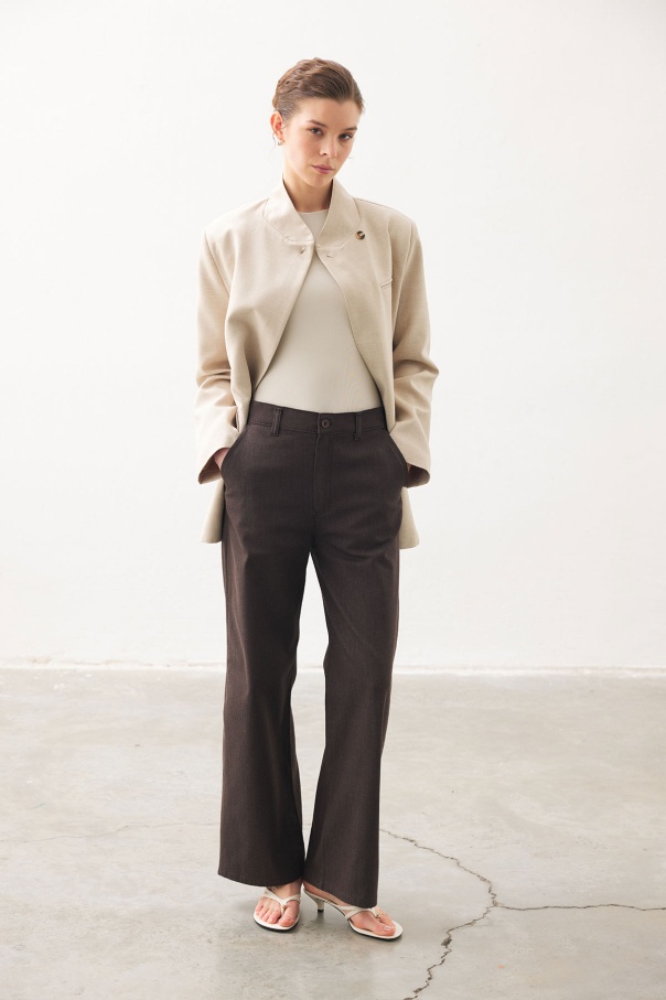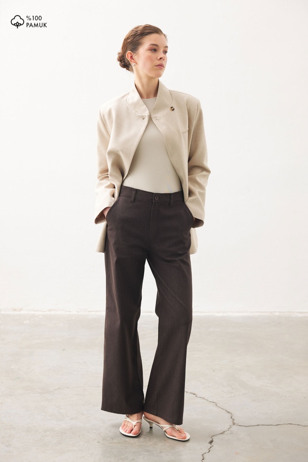 Yüksek Bel Minimal Denim Kahve Pantolon