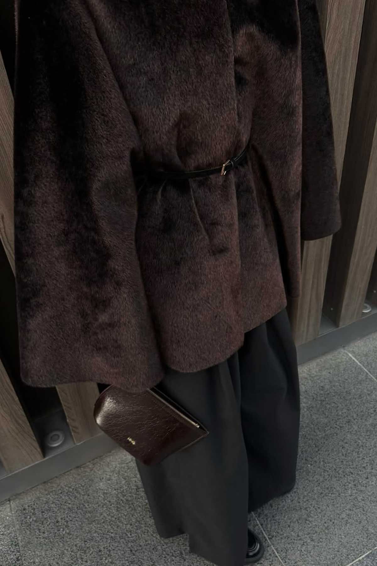 Süet Kemer Detaylı Pelerin Kahve Kaban
