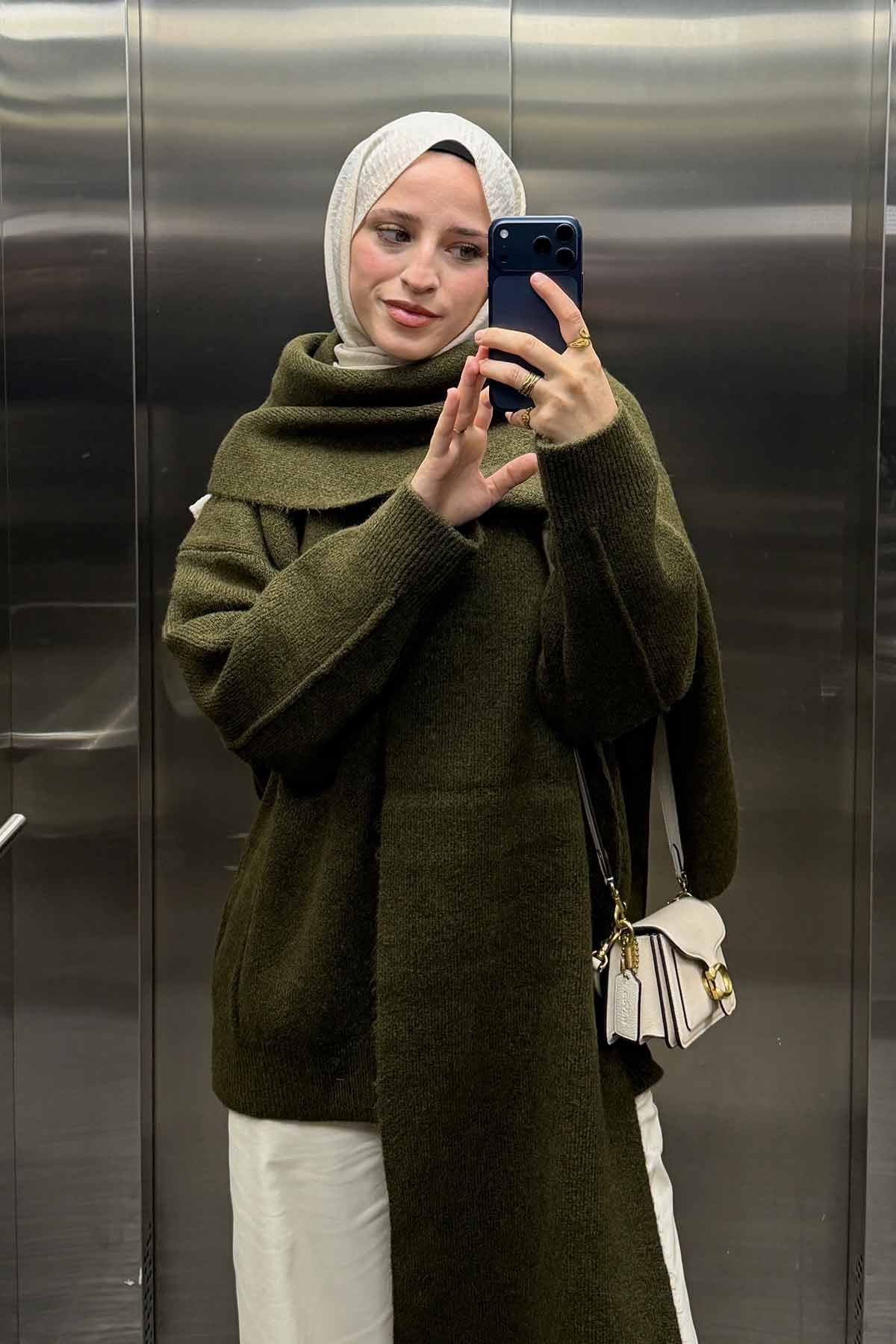 Premium Yumuşak Dokulu Koyu Haki Kazak